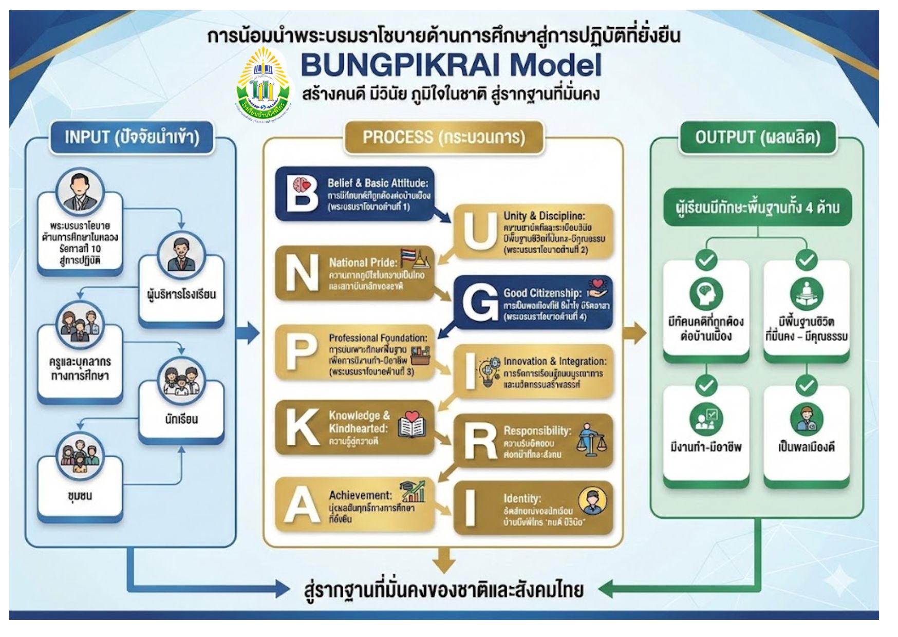 BUNGPIKRAI Model "สร้างคนดี มีวินัย ภูมิใจในชาติ สู่รากฐานที่มั่นคง"